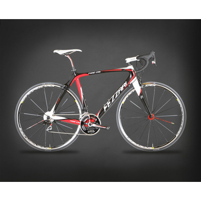 Add to that a great set of components, including: Shimano Ultegra derailleur and Shimano 105 shifters for smooth shifting Fezzari Carbon II fork to minimize the road chatter; FSA Gossamer crank with external oversized bearings that make it pedal smoother and more efficiently; Alex double-wall rims that are extremely durable; Maxxis performance tires; and a Fezzari Racing Design Ultra XR saddle that is one of the most comfortable road saddles you’ll ride.
